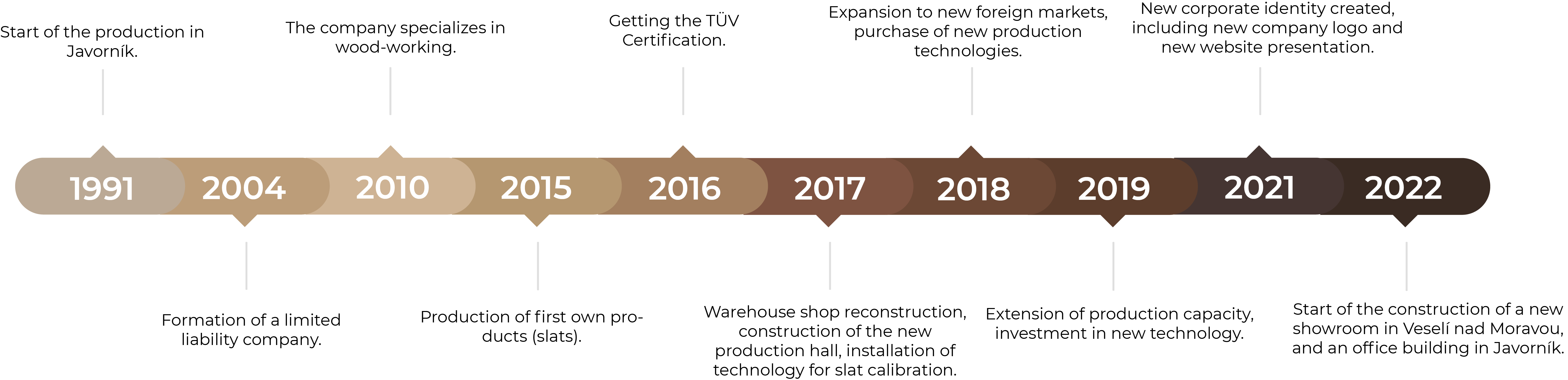 The original family timber company was established by Pavel Štipčák, who has been working with deciduous wood processing since the early 1990s. From the start, the main focus was on the production of semi-finished products for wooden floor coverings.